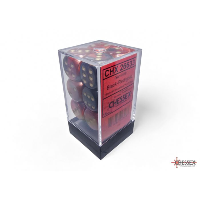 CHX 26633 Gemini Black-Red/gold 16mm d6 Dice Block (12 dice)