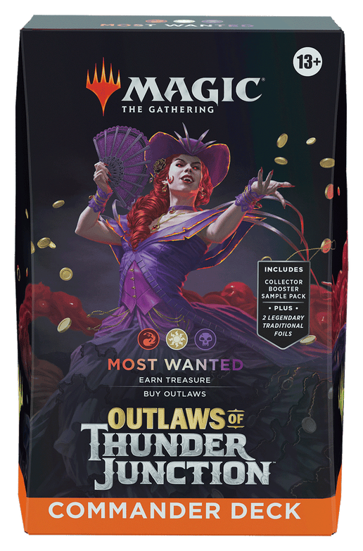 In Commander, four players come together to show their strength and strategy, with one player coming out on top. Each 100-card ready-to-play Outlaws of Thunder Junction Commander Deck makes it easy for Commander fans in your store to grab a deck and play right away.
